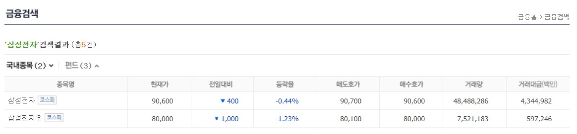 삼성전자 보통주 ⓒ네이버증권 삼성전자 우선주 ⓒ네이버 증권 반응형'시사 > 경제' 카테고리의 다른 글