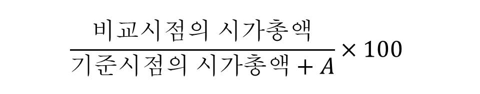 기준시점의 시가총액의 경우 1980년 1월 4일에 상장되어있는 주식의 시가총액이지만, 그 이후 새롭게 상장된 기업의 처음 시가총액을 더한 값이 A가 된다.