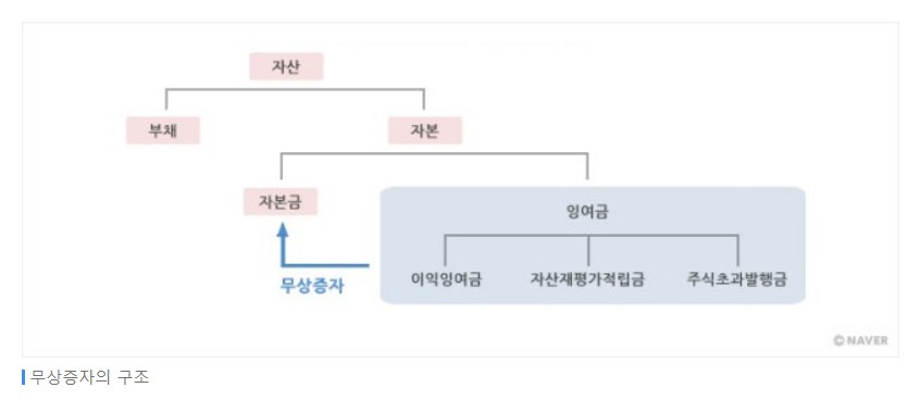 무상증자 ⓒ네이버 말 그대로, 무상증자는 기업이 주식발행을 위한 돈을 써서 자신들의 주식을 사서, 주주들에게 무료로 나눠주게 되는 것입니다. 결국 주식도 기업의 자산이기 때문에 기업의 총자산은 변함이 없는 것이죠.