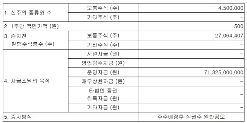 1. 이사회 결의를 통한 신주발행 공고(유상증자 공시)